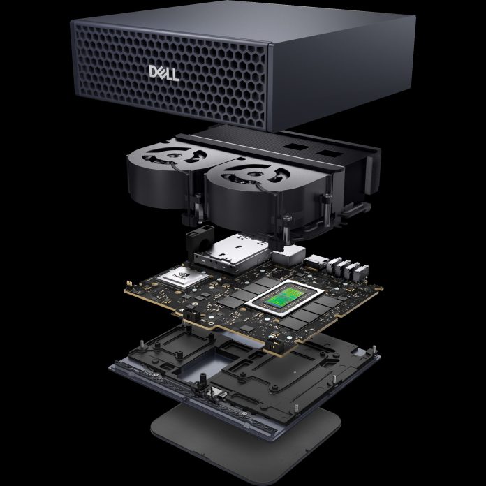 Dévoilé au GTC 2025, le Dell Pro Max avec GB10 se présente comme un poste de travail au format compact (15 x 15 x 5,1 cm, 2,9 kg), mais doté d’une capacité de calcul de niveau data center. Il embarque le superprocesseur Nvidia Grace Blackwell GB10, avec 20 cœurs ARM haute performance, et repose sur une mémoire unifiée LPDDR5x de 128 Go, capable de soutenir des modèles allant jusqu’à 200 milliards de paramètres. Dell annonce une performance de 1000 TOPS en FP4, soit près d’un pétaflop dans ce format desktop.