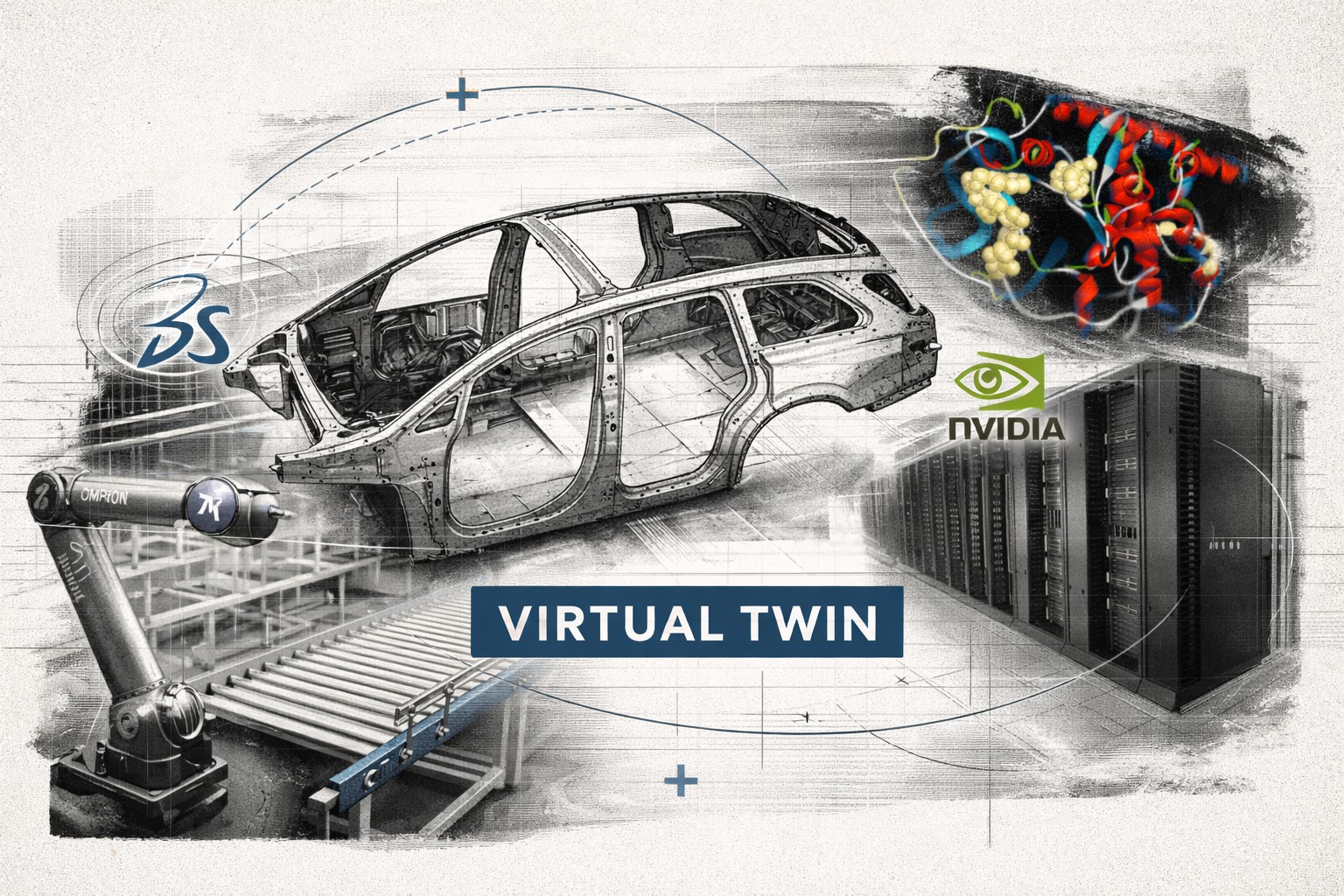 Pascal Daloz, directeur général de Dassault Systèmes, résume cette inflexion technologique « nous entrons dans une ère où l’intelligence artificielle ne se contente plus de prédire ou de générer, elle comprend le monde réel », ajoutant que les deux groupes construisent « des World Models industriels qui associent jumeaux virtuels et calcul accéléré ». Ces « modèles du monde » reposent sur des simulations validées scientifiquement, car Dassault positionne ses jumeaux virtuels comme base de l’IA industrielle, ce qui remplace les approches purement statistiques par des modèles déterministes exploitables opérationnellement pour la découverte de molécules, l’optimisation de composants ou la validation numérique de systèmes complexes.