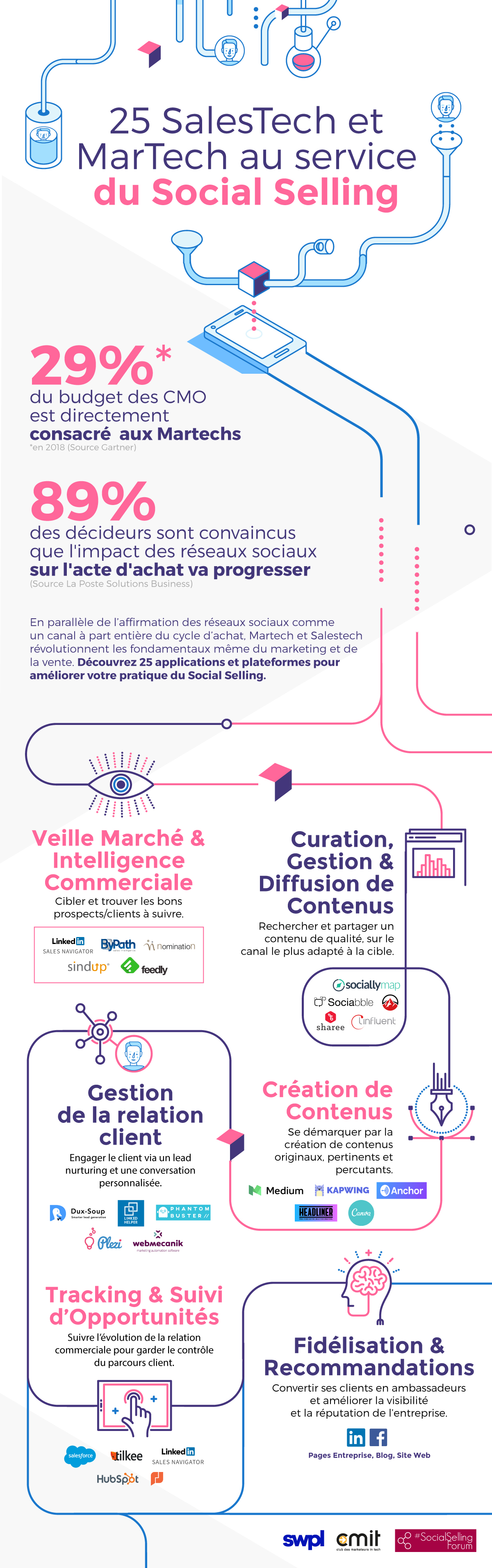 Voici les 25 applications et plateformes pour améliorer la pratique du Social Selling et faciliter la vie des marketeurs en 6 grandes familles :