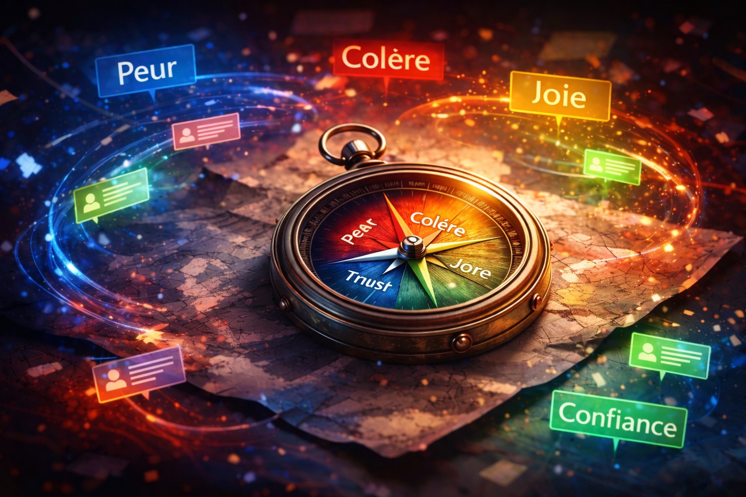 Cette approche dépasse l’analyse de sentiment binaire en s’appuyant sur des référentiels émotionnels issus des sciences cognitives. Les travaux de Robert Plutchik, et notamment sa typologie des émotions fondamentales, constituent l’un des cadres théoriques fréquemment mobilisés dans ce domaine. Ils permettent de distinguer des registres comme la peur, la colère, la confiance, la lassitude ou l’enthousiasme, et d’en analyser l’expression dans un contexte discursif donné.