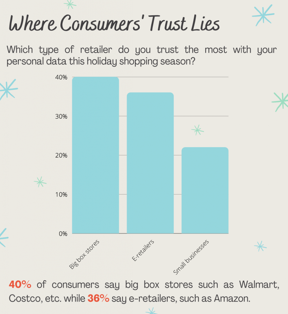 Même s’il s’agit d’une information liée au marché américain, les petits commerces français qui se lancent dans la vente en ligne devraient méditer ce constat : seuls 22 % des répondants à l'enquête confient leurs données personnelles à de petites entreprises locales. Ils font plus confiance dans les grandes surfaces et les poids lourds du e-commerce pour assurer la confidentialité de leurs données sensibles.