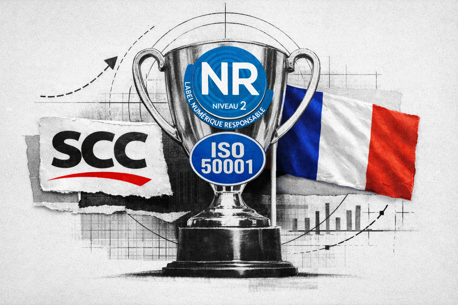 SCC France obtient simultanément le Label Numérique Responsable niveau 2 et la certification ISO 50001, portant à sept le nombre de certifications ISO de l'entreprise. Ces deux reconnaissances entérinent une trajectoire de décarbonation chiffrée : réduction de 5 à 10 % des consommations énergétiques par an, objectif de neutralité carbone en 2040, avec un premier jalon de réduction de 50 % d'ici 2030.