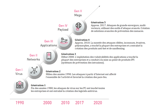 Plus précisément, la plupart des entreprises n'en sont qu'à la deuxième et à la troisième génération de sécurité, alors que les attaques actuelles en sont à la cinquième génération, beaucoup plus avancée et dommageable.