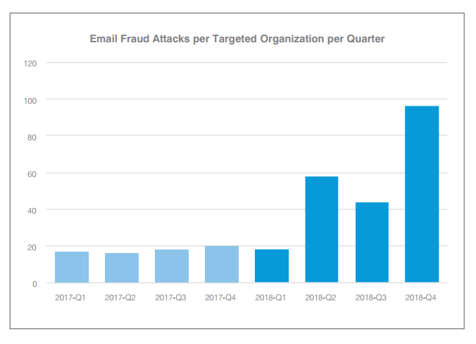 - Une moyenne de 96 attaques de ce type au dernier trimestre 2018 ;