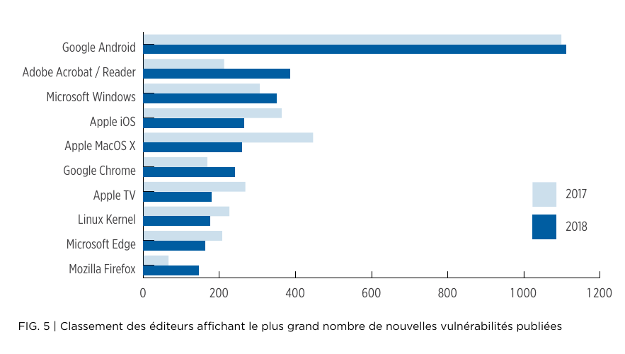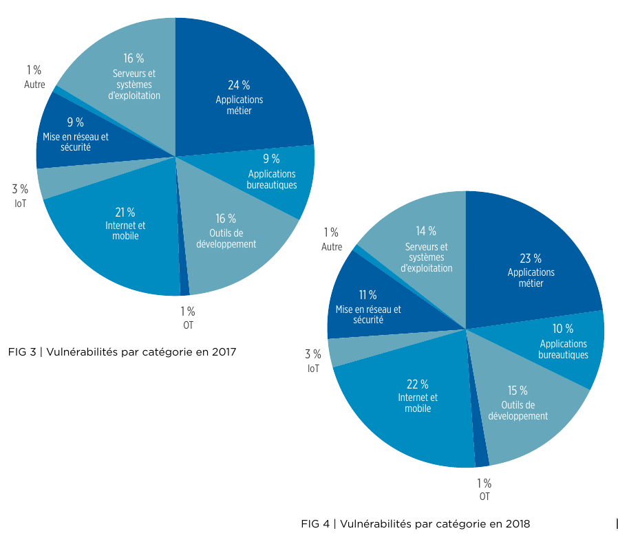 La répartition des vulnérabilités indique également que les logiciels métier, les applications mobiles et les navigateurs sont les plus exploités.