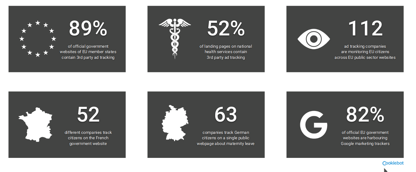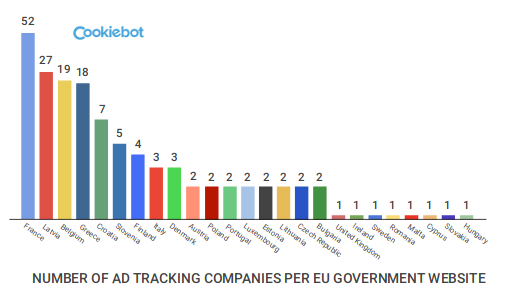 YouTube, DoubleClick et Google représentent trois des cinq premiers trackers selon Cookiebot. Concernant la France, 52 entreprises ont été identifiées sur les sites gouvernementaux.