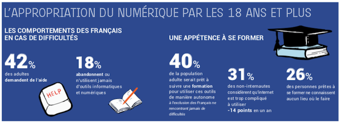 Notons que 18% des Français abandonnent ou n’utilisent jamais d’outils informatiques et numériques.