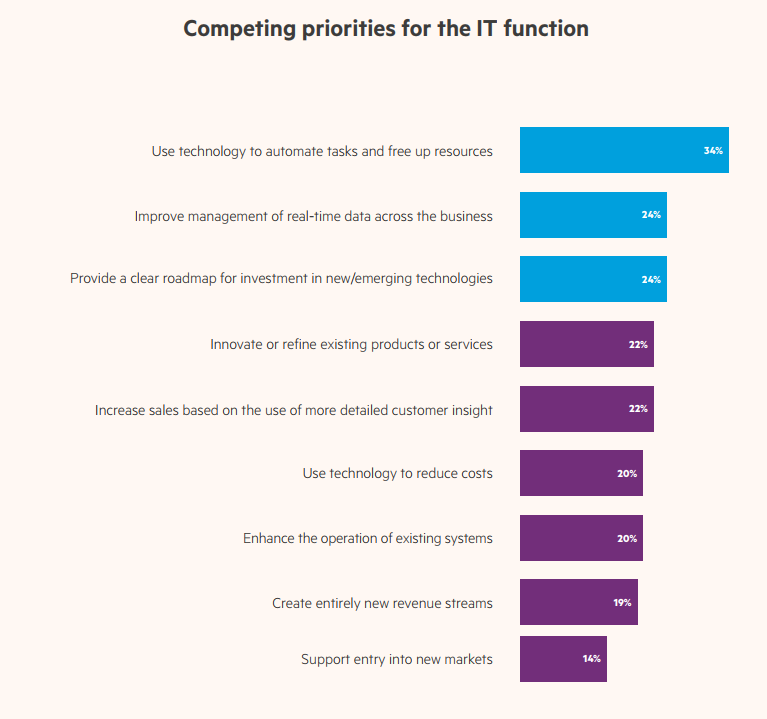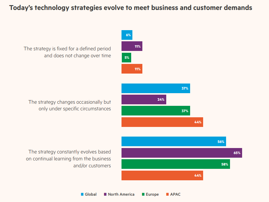 La croissance par l’innovation (via notamment l’automatisation) ne sera pas la seule stratégie adoptée. Beaucoup de décideurs annoncent vouloir changer de modèle économique au cours des trois prochaines années, dans une recherche d'équilibre entre le besoin de croissance et la nécessité d’exploiter les systèmes informatiques existants.
