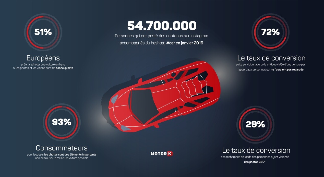 Cette principale conclusion d’une étude menée par MotorK (créée en 2010 en Italie, cette entreprise guide l'innovation dans le secteur automobile) confirme une tendance majeure : avec des connexions plus rapides (encore plus demain, avec la 5G) et des smartphones intégrant des écrans plus performants, l’image représente un élément majeur dans une décision d’achat.
